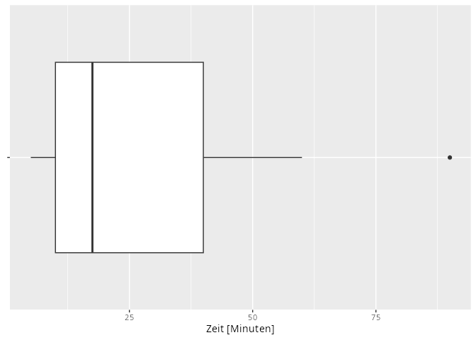 Es ergaben sich die folgenden Antworten. Dabei steht in der oberen Zeile die Antwort in Minuten und in der zweiten Zeile steht wie viele der Studenten diese Antwort gegeben haben.