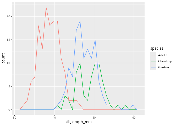 ggplot(aes(x = bill_length_mm, color = species)) +