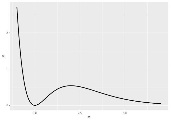 Als praktische Anwendung der Funktion seq() wollen wir nun Graphen von Funktionen darstellen. Man kann R nicht einfach einen Funktionsterm geben, der dann einfach so als Grafik dargestellt wird. Statt dessen müssen wir um ggplot2 zu nutzen eine Datentabelle erzeugen, die x- und die y-Koordinaten enthält. Diese Koordinaten werden dann verbunden. Dies ist ziemlich analog dazu, wie man es händisch auf einem Blatt Papier machen würde.