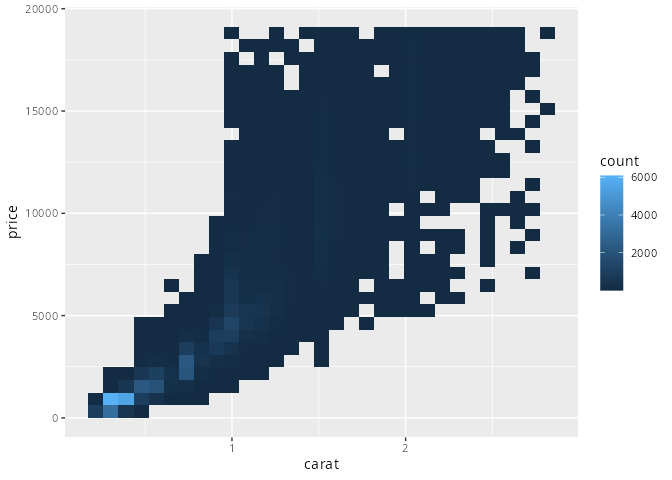 die zweidimensionalen Pendants zu der eindimensionalen Funktion geom_histogram()