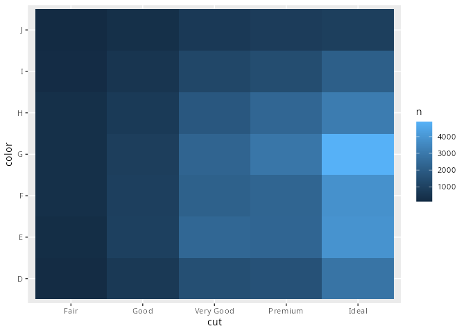 die zugehörige Anzahl enthält. Diese Datentabelle visualisieren wir mit der geometrischen Funktion geom_tile()