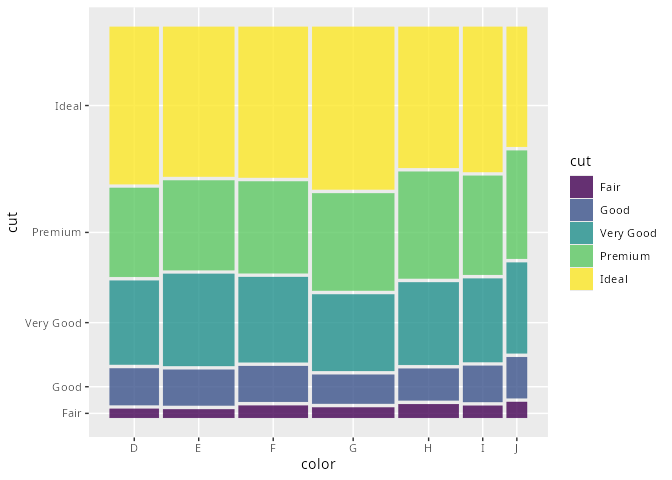 Um die Unabhängigkeit zweier Merkmale zu prüfen, ist der Mosaikplot aus dem Paket ggmosaic