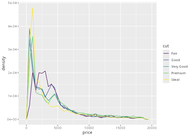 mit der wir Häufigkeitspolygonzüge darstellen können. Ich persönlich würde diese Darstellung nicht überstrapazieren und nur dann verwenden, wenn es wirklich sinnvoll ist. Oft sind facettierte Histogramme die schönere Wahl.