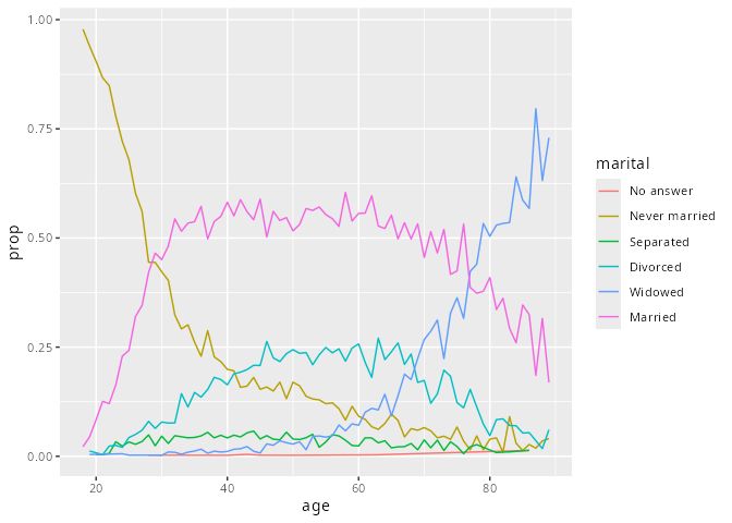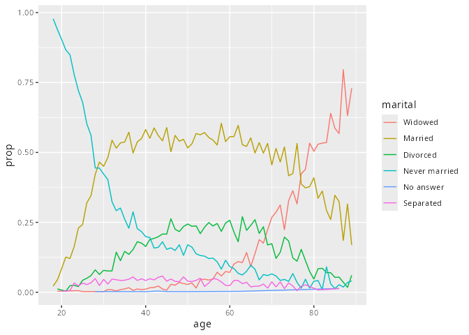 ggplot(aes(age, prop, colour = fct_reorder2(marital, age, prop))) +