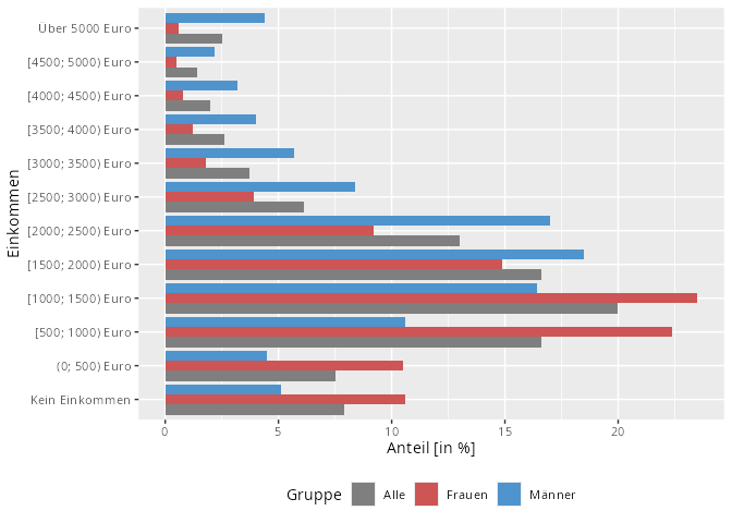Bemerkung: In der Regel ist die Anzahl der Ausprägungen überschaubar. Sollte die Anzahl doch größer sein, bietet das Paket forcats