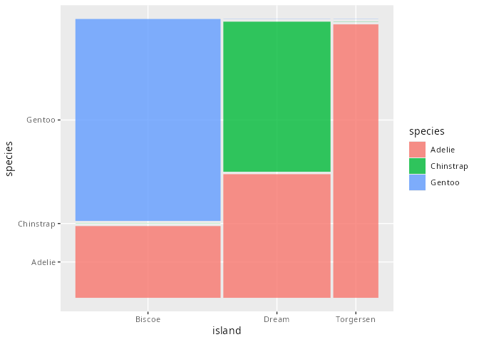 geom_mosaic(aes(x = product(species, island), fill = species))