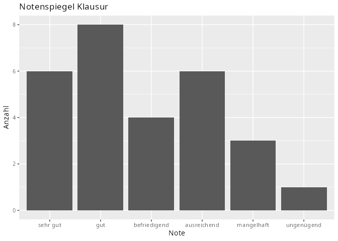 erstellen kann. Wir werden in Kapitel 13 und Kapitel 14 noch genauer auf das Erstellen der jeweiligen Grafik eingehen und darauf wie diese zu interpretieren ist. Insbesondere wenn statistische Transformationen (zum Beispiel bei Histogramm, Boxplot oder Mosaikplots) durchgeführt werden müssen, ist die Interpretation der Grafiken nicht immer trivial. In den späteren Kapiteln legen wir das Augenmerk insbesondere auf die Syntax, wie man Grafiken ändert (Farbgebung, Anordnungen, verschiedene geometrische Funktion, Ändern der Legende und der Achsen, und so weiter).