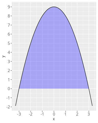 Man bestimme die Fläche die zwischen x-Achse und der Funktion f(x) = 9 - x^2 eingeschlossen wird. Die Funktion schneidet die x-Achse bei x_1=-3 und x_2=3. Daher müssen wir folgendes Integral bestimmen:
